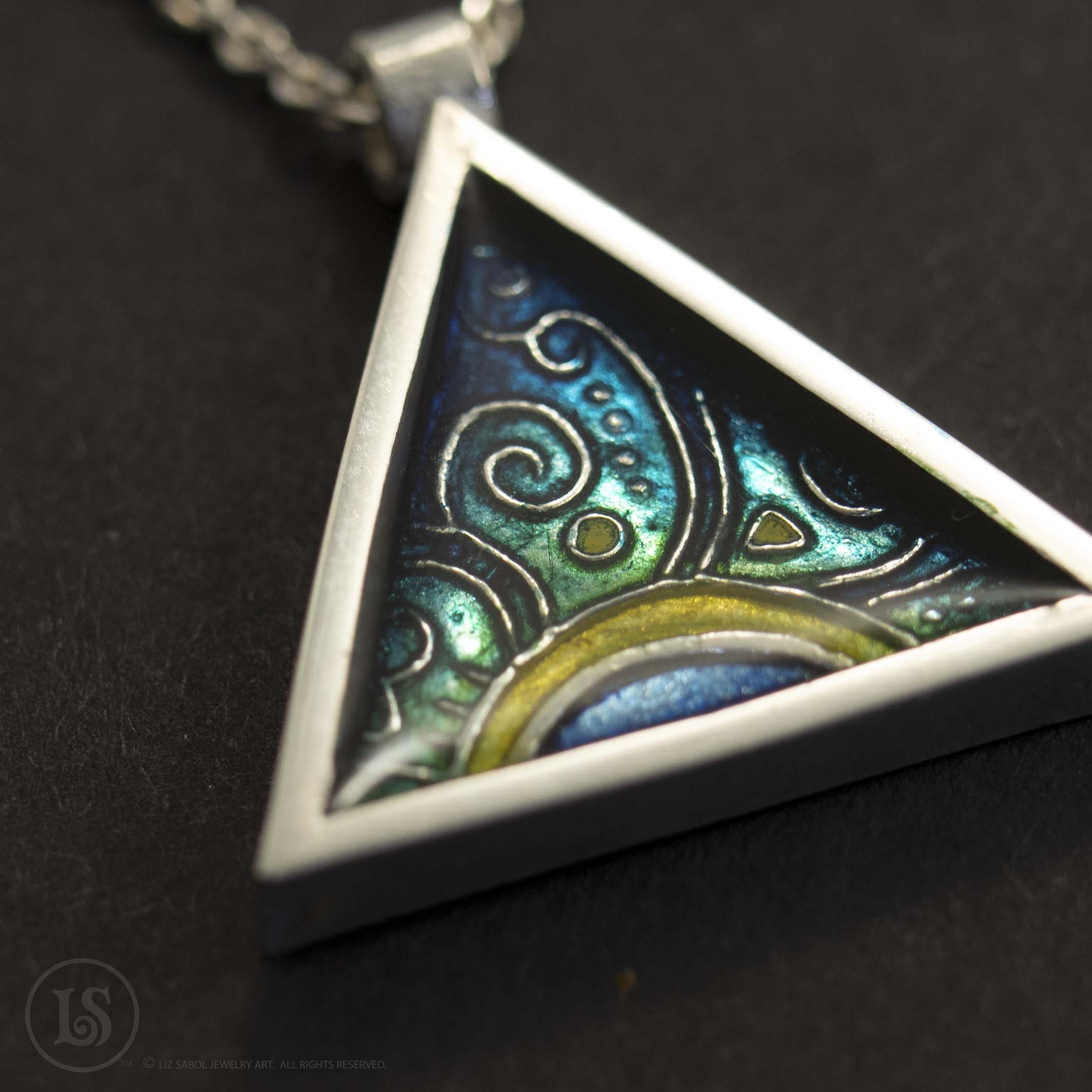 Aqua Dawn Triangle  pendant,  sterling silver