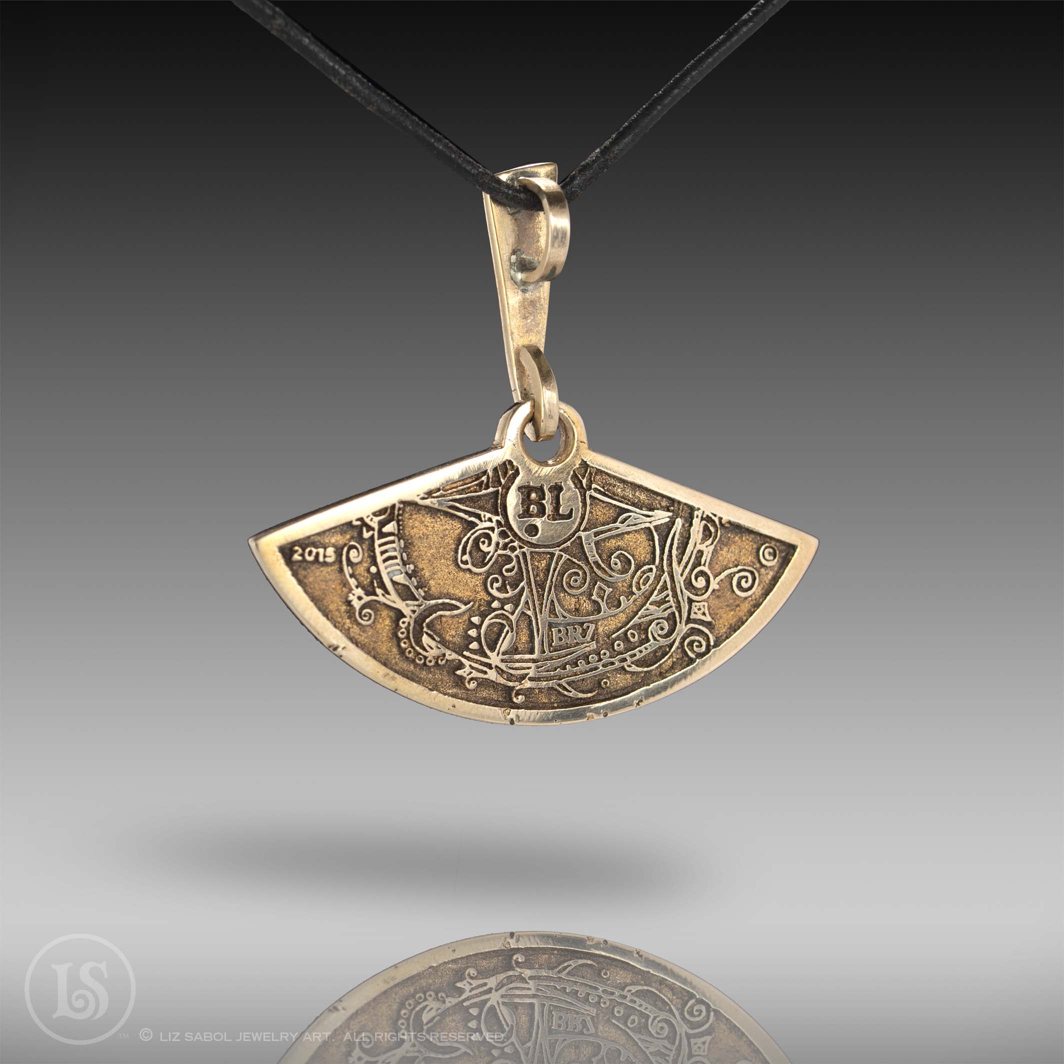 This bronze pendant is hand-crafted in bronze metal clay, hand-painted and filled with resin.  The resin is sanded flush and re-polished. Chain/cord not included.