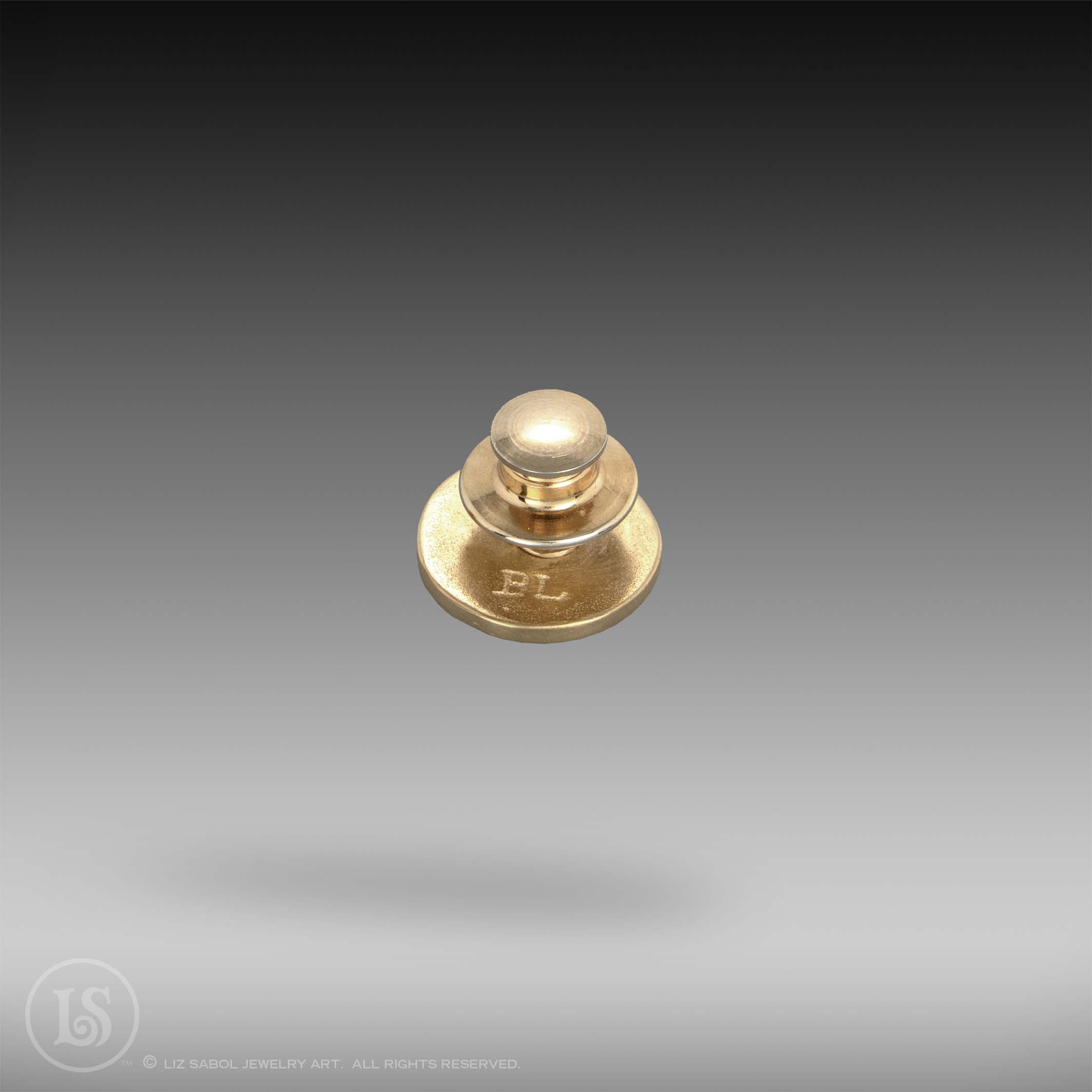 This bronze pin is hand-crafted in bronze metal clay, hand-painted and filled with resins. The resin is sanded flush and re-polished.