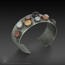 Sterling cuff with various stones. Spiral texture. 7.25"