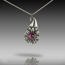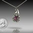This pendant is hand-crafted in 999 fine silver metal clay, with a liver-of-sulfer patina. Created from a hand-carved wax mold. A 8mm lab-grown ruby is in the center of the flower.