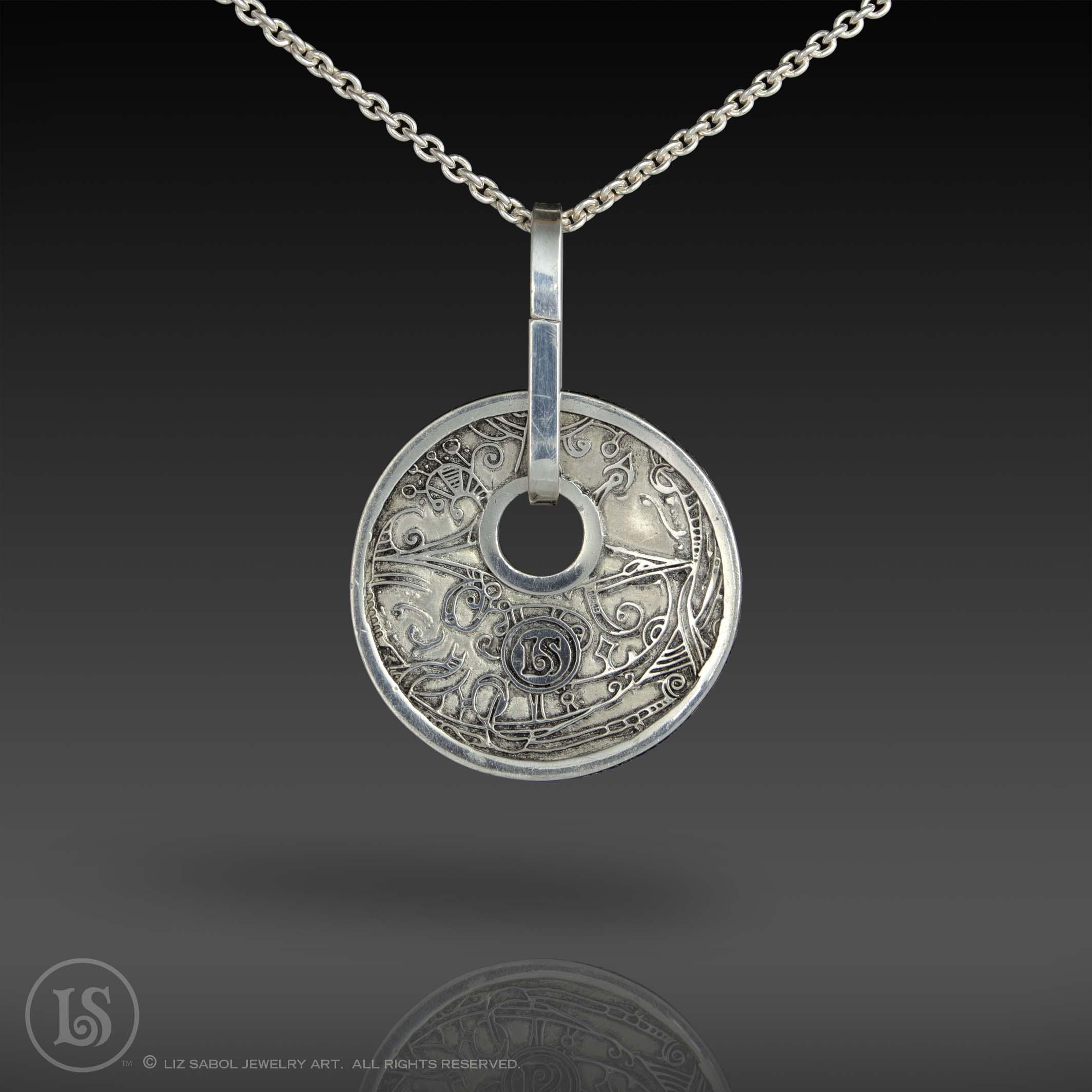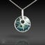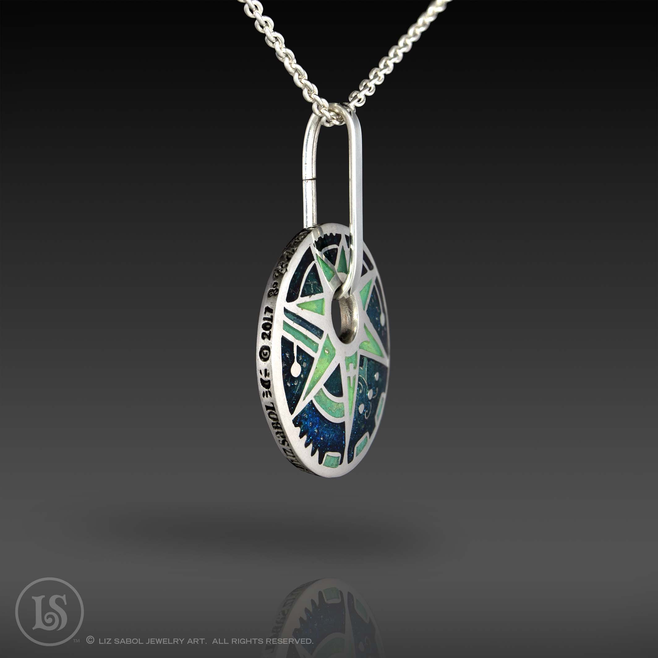 This pendant is hand-crafted in 960 sterling silver metal clay, hand-painted and filled with resin. The resin is sanded flush and re-polished.