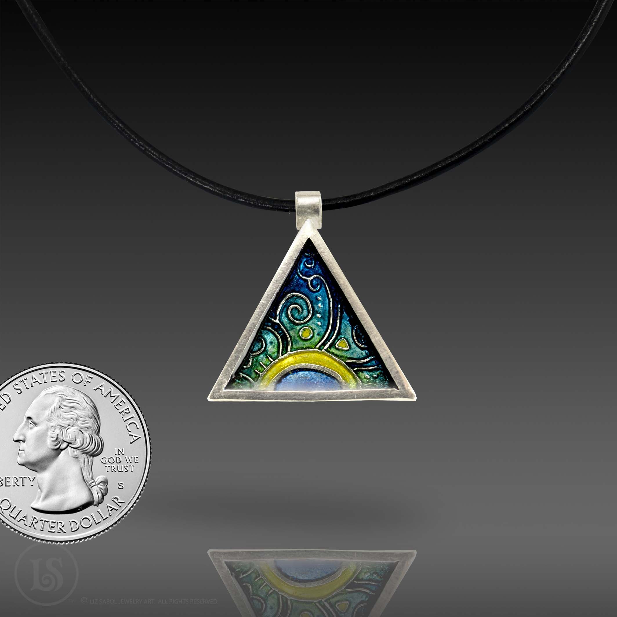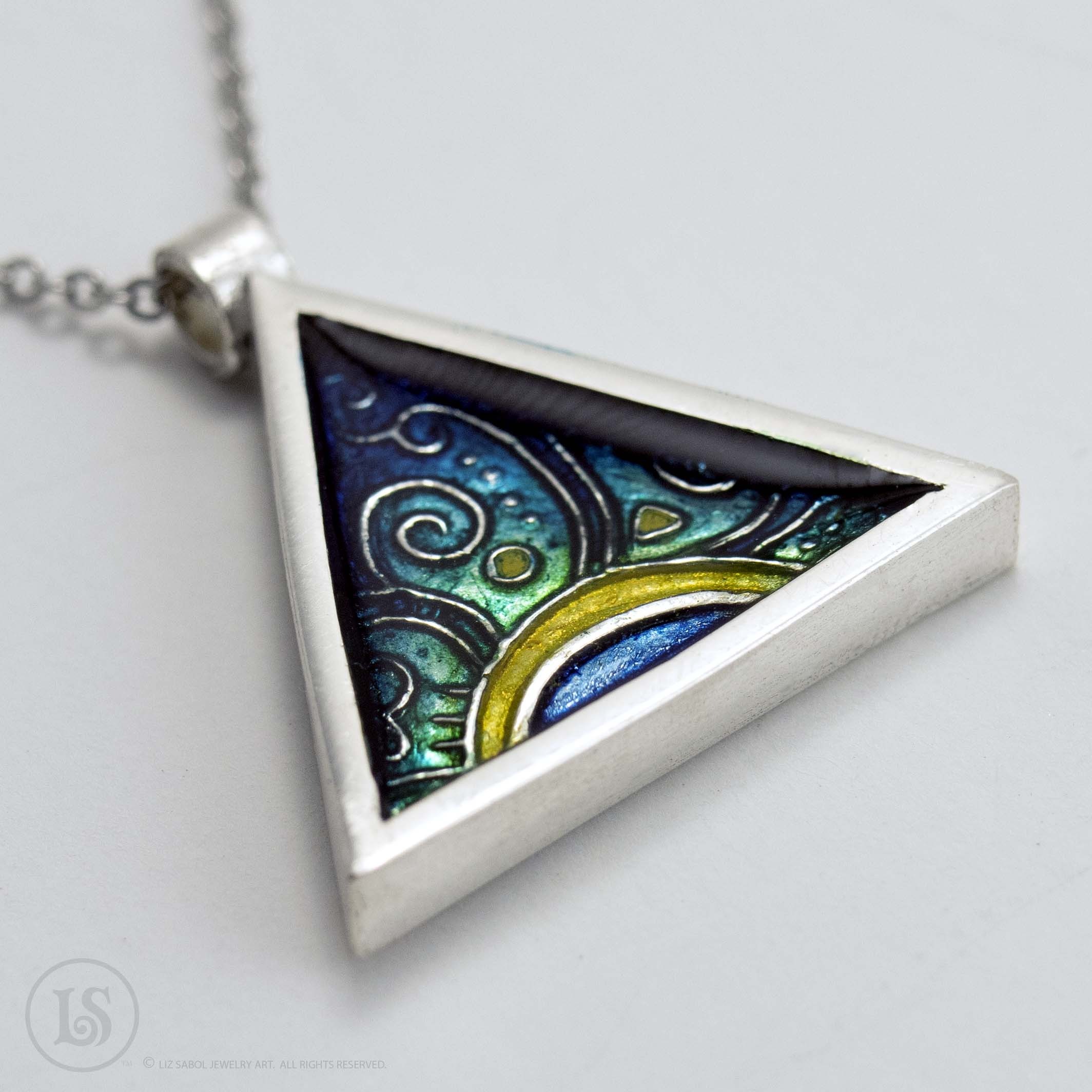Aqua Dawn Triangle  pendant,  sterling silver