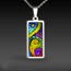 This is a high-quality reproduction in Giclee, archival fine-art print, with vivid color and a mother-of-pearl shimmer, of my colorful abstract illustration #2, mounted on stainless steel and covered in solid glass. Affordable for everyone. Available in silver-tone. Comes with a stainless steel chain.