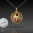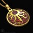 This is a high-quality reproduction in ink and foil of my popular handmade champleve Celestial Sun design, mounted on stainless steel and covered in solid glass. Affordable for everyone. Gold-plated. Comes with a stainless steel chain.
