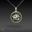 This is my wood-cut illustration of the Eye of Horus symbol. In ancient Egypt, the Eye of Horus symbolized protection, health, and restoration. The Eye of Horus is associated with the moon and the Eye of Ra with the Sun. Features metallic accents and mounted on stainless steel and covered in solid glass. Affordable for everyone. Comes with a stainless steel chain.